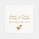 The design features two gold hearts and personalisation of the bride's and groom's first and last names, and the wedding date.