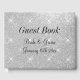 Personalised wedding guest book with sparkly cover. Classy design with glittery background image and elegant typography. Personalise with name or bride and groom plus date. Luxury details for your special day.