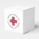 Send your tired guests off with some recovery essentials (pain reliever, antacids, gum, etc) in these cute and clever favour boxes. Unique wedding favour design features "Hangover Relief Kit -- In Sickness and in Health" in black lettering curved around a red cross illustration bearing your initials and wedding date.