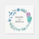 Personalised Wedding Napkin | blue purple flowers