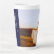 Savour your morning coffee or tea with this stylish and personalised Navy Blue Latte Mug. Featuring your favourite wedding photo with your names in a modern sans serif font on a navy blue banner, this latte mug is perfect for enjoying your daily cup of joe or giving as a thoughtful wedding or anniversary gift.