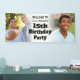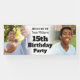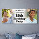 Modern 15th birthday party welcome sign for a boy. Personalised banner with a modern 2-photo collage and bold letters. For inside or outside use. To change the photo placement: click on the button to customise the design, click on "crop", and move the image to centre it.