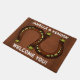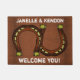 Two horseshoes on a brown background makes a dandy western themed welcome mat.