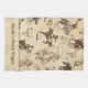 This personalised Western themed kitchen towel pattern with a variety of rodeo cowboys in action riding, roping, and bronc busting, interspersed with saddles, boots, and hats, on a vintage background.