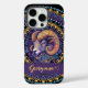Transform your phone into a statement piece with this Personalised Whimsical Aries Zodiac Dot Mandala phone case. This beautifully intricate design features a striking mandala centred around a stylised ram’s head, symbolising the bold energy of Aries. The ram’s elaborate horns and swirling patterns are showcased in a rich palette of purples, blues, and golden hues, creating an eye-catching and vibrant look. Encircling the ram is a stunning arrangement of decorative arcs, with petal-like and teardrop shapes that add a sense of elegance and traditional mandala artistry. This phone case not only protects your device but also adds a touch of sophistication and individuality to your everyday style. Customise it with your name for a unique, meaningful accessory that blends astrological symbolism with artistic beauty.