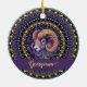 Adorn your space with this Personalised Whimsical Aries Zodiac Dot Mandala ceramic ornament, a striking piece that blends intricate artistry and astrological charm. This unique ornament features a highly detailed mandala centred around a stylised ram’s head, symbolising the bold Aries spirit. The ram is embellished with elaborate spirals and swirling patterns, creating a captivating visual texture, while a vibrant palette of purples, blues, and golden hues lends a sense of richness and elegance. Encircling the central ram motif are meticulously arranged decorative arcs, filled with repeating petal and teardrop designs, reminiscent of classic mandala art. Perfect for adding personality to your holiday decor, hanging on your wall, or gifting to someone special, this ornament can be personalised with a name to make it truly one-of-a-kind. Infuse any space with vibrant energy and symbolic beauty through this artistic ceramic ornament.