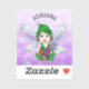 Hand drawn purple background and whimsical Caucasian brunette fairy. Just add name in the personalise area.