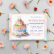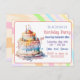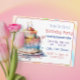 Birthday invitations for girls, kids or adults. Whimsical Birthday cake with pretty purple, pink, blue and yellow frosting and candles.