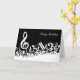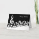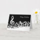 An ideal birthday card for the music lover or musician with an eye-catching modern design featuring white jumbled musical notes and a large treble clef on a classical black background. The design includes customisable text for a name or text of your choice to create a unique and personalised music gift.