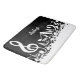 Perfect for the music lover or musician with an eye-catching modern design featuring white jumbled musical notes and a large treble clef on a classical black background. The design includes customisable text for a name or text of your choice to create a unique and personalised music gift.