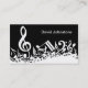 Perfect business cards for the music lover or musician with an eye-catching modern design featuring white jumbled musical notes and a large treble clef on a classical black background. The design includes customisable text for a name or text of your choice to create a unique and personalised music gift.