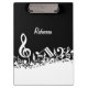 Personalised White Jumbled Musical Notes on Black Clipboard