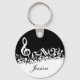 Personalised White Jumbled Musical Notes on Black Key Ring
