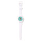 Personalised modern stylish light teal, white and red wristwatch design with the owner's first and last name.