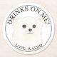 Personalised White Long Haired Chihuahua Wedding Round Paper Coaster