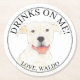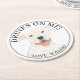 Personalised White Pitbull Staffy Dog Wedding Round Paper Coaster
