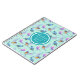 A multicolored watercolor pattern with various wild and exotic birds. Some have their wings extended, flapping their wings others standing still. Colours include baby blue, pastel pink, purple and a warm golden orange colour on their chest. The colours beautifully mix and blend together. A pretty and unique artistic design. Background is a pale mint green. The centre has a teal green circle with a white inner border, personalise with your own name and subject title.
