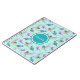 A multicolored watercolor pattern with various wild and exotic birds. Some have their wings extended, flapping their wings others standing still. Colours include baby blue, pastel pink, purple and a warm golden orange colour on their chest. The colours beautifully mix and blend together. A pretty and unique artistic design. Background is a pale mint green. The centre has a teal green circle with a white inner border, personalise with your own, or your recipients name