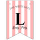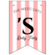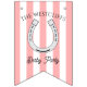 Decorate the Winner's Circle at your derby party with this pink cabana stripe personalised derby party bunting that features your name and event. This classic cabana stripe custom derby party decoration will add an elegant social club touch to your race day decor for your horse racing viewing party - complete with horseshoe accents. This bunting is durable and suitable for outdoor use. Part of our Cabana Stripe Derby Party collection. All text and colours can be customised in the Design tool. If you want to change the phrase on the flags, you can show/hide the letter vs horseshoe options. Message us if you need help/