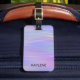 Design features a wispy pattern design, in rainbow colours. Can be personalised wth your name and contact details.