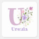 Personalised with Name and First Initial. Design features Monogram & Name with Flowers either side in a water colour pastel style. Example name is Ursula. Could be for anyone with a name beginning with U.