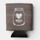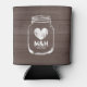 Personalised wood grain panel mason jar wedding can coolers Cute brown and white beverage holder for country chic outdoor garden barn wedding party, bridal shower, anniverary, engagement etc. Personalise with monogrammed name initials letters of bride and groom / newlyweds couple. Create one for guests too and give them away as wedding favour / souvenir Make your own cosy can coolers with weathered heart symbol. Perfect for beer and other cold drinks. Customisable background colour. Change the quantity to get the cheapest price per can cooler. Also available for alcoholic drinking bottles. Vintage rustic typography in glass jar. Summer romance theme design.
