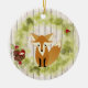The Christmas tree ornament features an adorable woodland fox with his red bird friend. They are sitting in a holiday wreath decorated with pine cones and holly with a faux wood background. This ornament can be personalised with a name and date. ^
