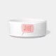 This cute funny custom pet dog bowl features hand-lettered word "WOOF" inside a talk bubble and on the other side your pet's name personalised in classic all-caps hand-lettered serif text. A stylish water and food bowl for your furry family member, also available in large size. ©Marisu Valencia