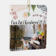 at christmass as a hanging decration for the chritmass tree.. its white porcline or cramic but very well made with added photo on one side.. also has a lovley red bag to keep it in.. execlent printed text in bold and black stands out well aganst the blue background of the photo.