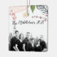 at christmass as a hanging decration for the chritmass tree.. its white porcline or cramic but very well made with added photo on one side.. also has a lovley red bag to keep it in.. execlent printed text in bold and black stands out well aganst the blue background of the photo.