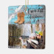 at christmass as a hanging decration for the chritmass tree.. its white porcline or cramic but very well made with added photo on one side.. also has a lovley red bag to keep it in.. execlent printed text in bold and black stands out well aganst the blue background of the photo.