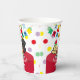 Personalised Yellow and Black Labradors Birthday Paper Cups for dog lovers. Whimsy and funny Labrador Retriever Cartoon created by Naomi Ochiai from Japan. Two Labrador puppies are celebrating their birthday!! Yellow Labrador Puppy and Black Labrador Puppy are sitting at the Red Table in the colourful polka dot background.