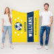 Personalised Yellow and Navy Soccer Player Name Fleece Blanket