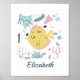 Personalise this cute adorable poster for the nursery or kids room. It has a pink and yellow fish and sea life theme. Add baby/child's name.