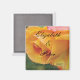 Fun bridal wedding magnet with a blushing yellow rose background with your names and date.