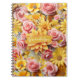 Personalised floral notebook with spiral bound pages. Add a name in the centre, over a little gold colour banner. Flowers are pink roses and yellow daisies. The lined pages are perfect for filling with daily prayers, life plans, and keeping secrets. The unique floral design works for teens, moms and grandmothers. It makes a lovely birthday, graduation or Christmas gift.