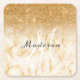 Personalised Yellow Gold Glitter Monogram Marble Square Paper Coaster