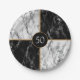 Personalised Birthday / Anniversary Party Black White Check Marble Paper Plates MIGNED Design - Add Your Age - Year / or Letter / Logo / Number / More with Customisation tool !