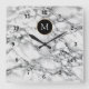 Personalised Wall Clocks with White Marble Stone Design - Add Your Letter / Logo / Number / More