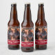 Personalised Your Photo in Red Frame Snowflakes Beer Bottle Label