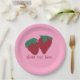 You can easily personalise these strawberry paper plates. Pictured is a painting of two whole, ripe strawberries, with green leaves. There is a placeholder template for you to type in your text.
