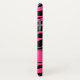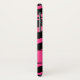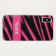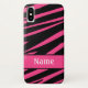This iPod Touch phone case features a modern and trendy black and fuchsia pink zebra print design.