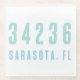 Upscale, simple and modern design Zip Code Glass Coaster personalised with your own Zip Code, City and State. In beautiful, coastal blue colours sure to match any Coastal Decor or Beach House Decor. Easily personalise this design with your own location.