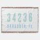 Upscale, simple and modern design Zip Code Throw Blanket personalised with your own Zip Code, City and State. In beautiful, coastal blue colours sure to match any Coastal Decor or Beach House Decor. Easily personalise this design with your own location.