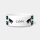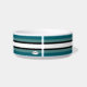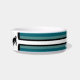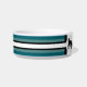 White ceramic dog food bowl with four tone stripe, white and black as the foundation, and any coordinating colour you choose at the "customise" option (within the personalise option) will appear in two tones .HAMbyWhiteGlove. Shown here in a teal, white and black.