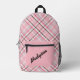 Lightweight and durable, our custom all-over-print Backpack is just what you need. The spacious interior is ideal for travel, school, gym, or any mobile storage need. Bring your stuff with you in style! Features Adjustable padded shoulder straps, two chambers on the inside for laptop storage, mesh side pockets and an identification label.