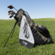 A Personalized Gray And Black Stripe Golf Bag Center Golf Towel For Your Active Day Playing Golf.