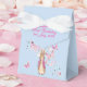Personalize Peter the Rabbit in a pink jacket with butterflies and balloons favor box with your child's name and date of birth.
