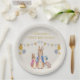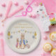 Personalize Peter rabbit beige linen 1st Birthday Paper Plate