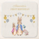 Personalize this Peter the rabbit 1st Birthday design with a child's name and the event.